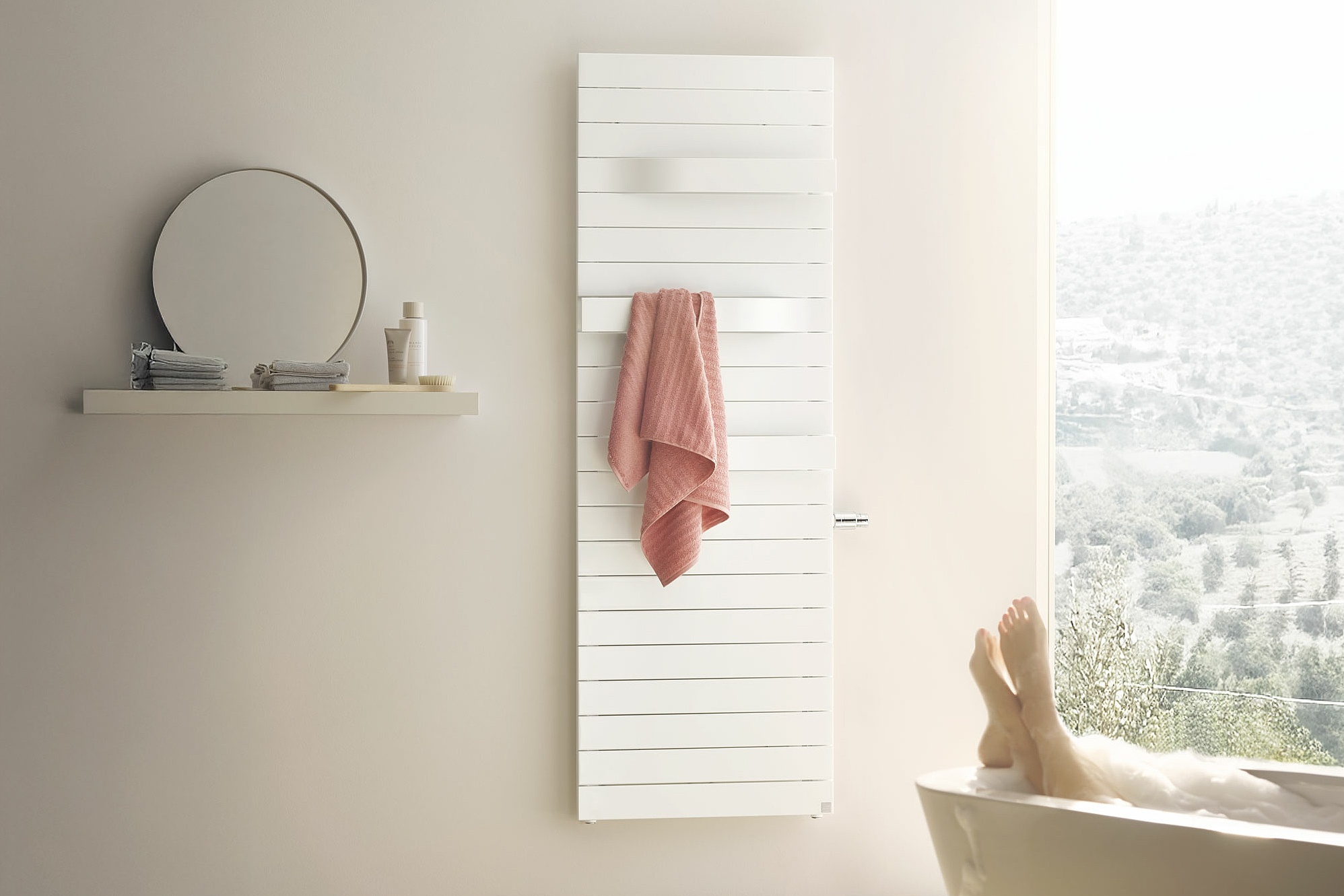 The primary job of a radiator is to provide a high level of thermal comfort. At the same time, it needs to look absolutely stunning so that it can serve as a stylish design centrepiece for the room. Yet, it cannot afford to lack functional features either. Tabeo makes all of these requirements its own, bringing something extra special in the process – and not just in bathrooms. With its clear form, characteristic joints, and towel rails that protrude dynamically from the surface, it fits perfectly into any home environment. Towels can be easily hung on the curved rail and conveniently warmed.