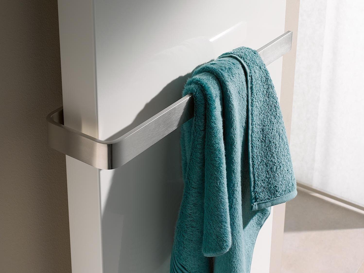 Beim KERMI Rubeo Design- und Badheizkörper kann der Handtuchbügel in Edelstahl in beliebiger Höhe montiert werden.