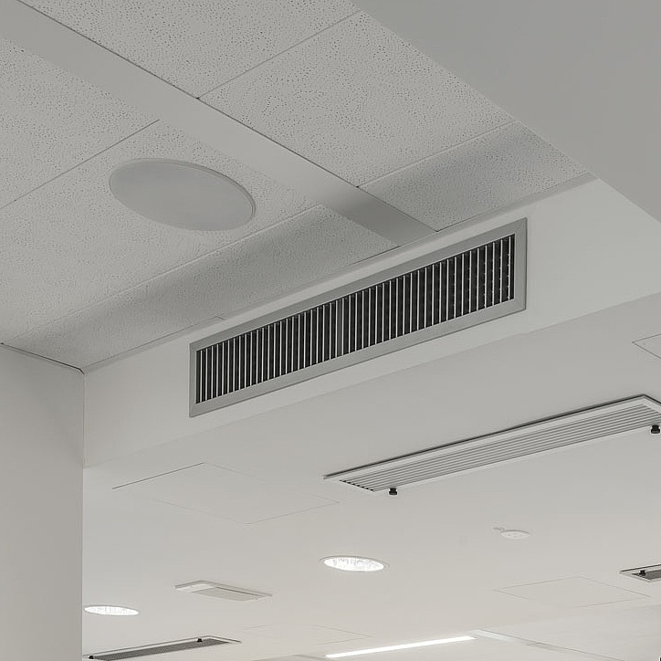 Kanalgeräte für den Einsatz in der abgehängten Decke überall da, wo eine besonders hohe Kühllast besteht oder zentral gekühlt werden soll.