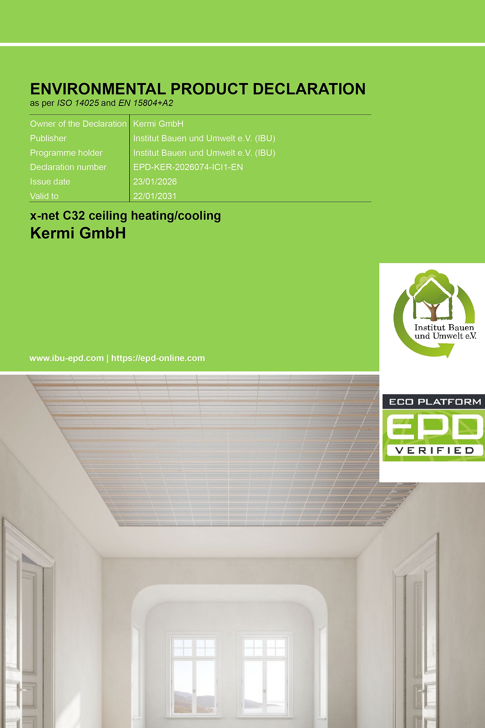 Wir haben für alle Stahlheizkörper sowie zusätzlich für unsere x-net C32 Deckenheizung und Deckenkühlung die Environmental Product Declaration (EPD) erhalten. Das Label wird vom IBU Institut für Bauen und Umwelt e.V. vergeben und macht die Umweltwirkung der Produkte über die komplette Prozesskette transparent und vergleichbar. Die bei Ausschreibungen und Fördergeldvergaben zunehmend geforderten Umweltleistungen können Fachpartner mit dem Einsatz von EPD-verifizierten Produkten nachweisen und sich somit Wettbewerbsvorteile sichern sowie insgesamt nachhaltigere Gebäudekonzepte umsetzen.