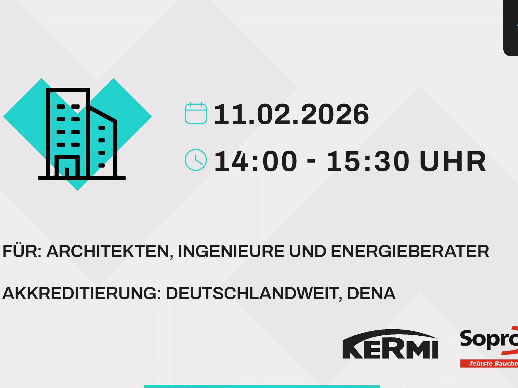 Maßgeschneiderte Estrich-Konstruktionen in der Altbausanierung – Estrich, Fußbodenheizung und Wärmepumpe im effizienten Einklang: So lautet das Thema der gemeinsamen Online-Fortbildung von KERMI, Sopro und WirliebenBau am 11. Februar 2026 (14:00 – 15:30 Uhr).