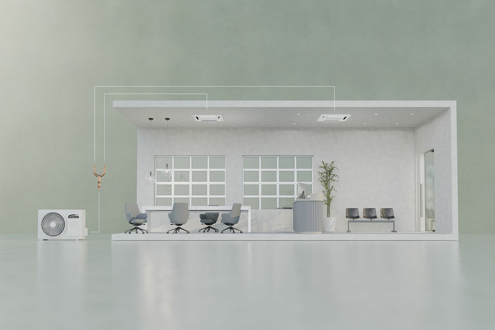 As single, multi or light commercial split systems, air conditioning systems from KERMI ensure the desired room temperature and thus a pleasant, comfortable climate. To find the right solution for every application and all structural conditions, KERMI has a comprehensive product portfolio that meets all requirements with state-of-the-art technology, high efficiency and a wide range of functions.